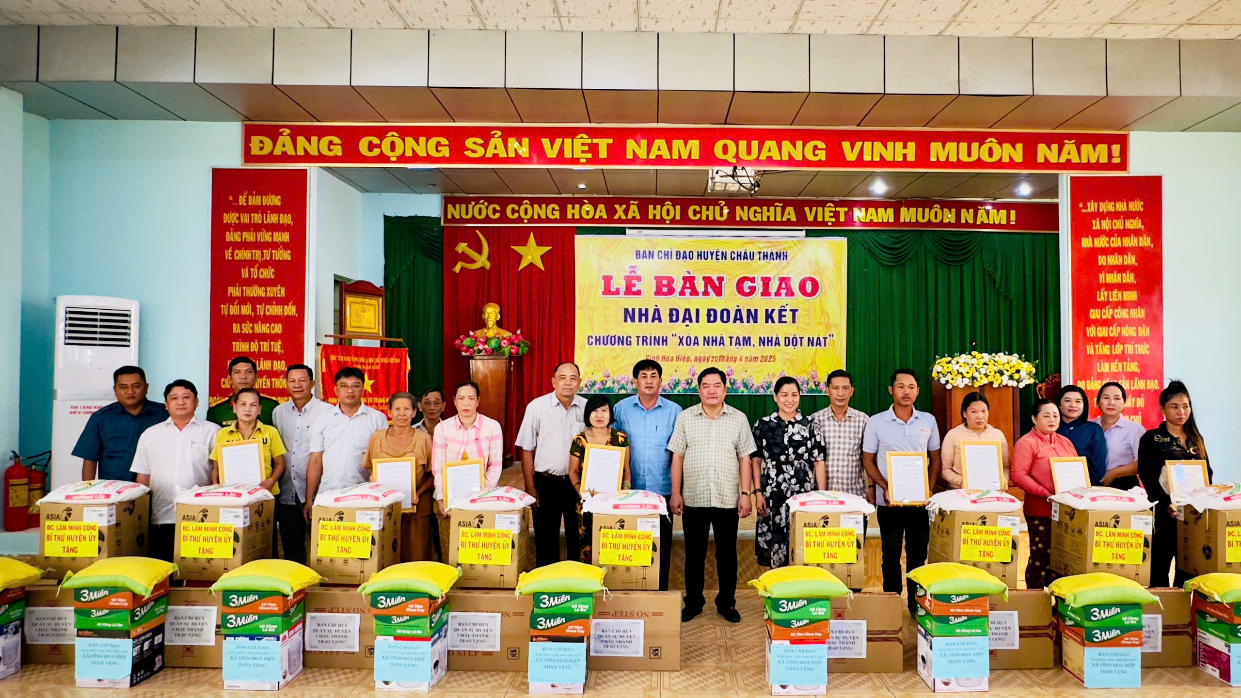 Phát biểu tại lễ bàn giao, ông Lâm Minh Công, Bí thư Huyện ủy Châu Thành, Trưởng Ban Chỉ đạo xóa nhà tạm, nhà dột nát huyện, cho biết, đến ngày 20/4/2025, huyện đã bàn giao xong 225 căn nhà đại đoàn kết thuộc Chương trình “Xóa nhà tạm, nhà dột nát” cho các hộ dân thuộc đối tượng hỗ trợ, đạt 100% kế hoạch; đồng thời, yêu cầu các địa phương tiếp tục rà soát, hỗ trợ đúng đối tượng và đẩy mạnh xã hội hóa công tác hỗ trợ nhà ở để các hộ dân có hoàn cảnh khó khăn về nhà ở an cư, lạc nghiệp; phấn đấu vươn lên thoát nghèo, góp phần phát triển kinh tế - xã hội địa phương./.