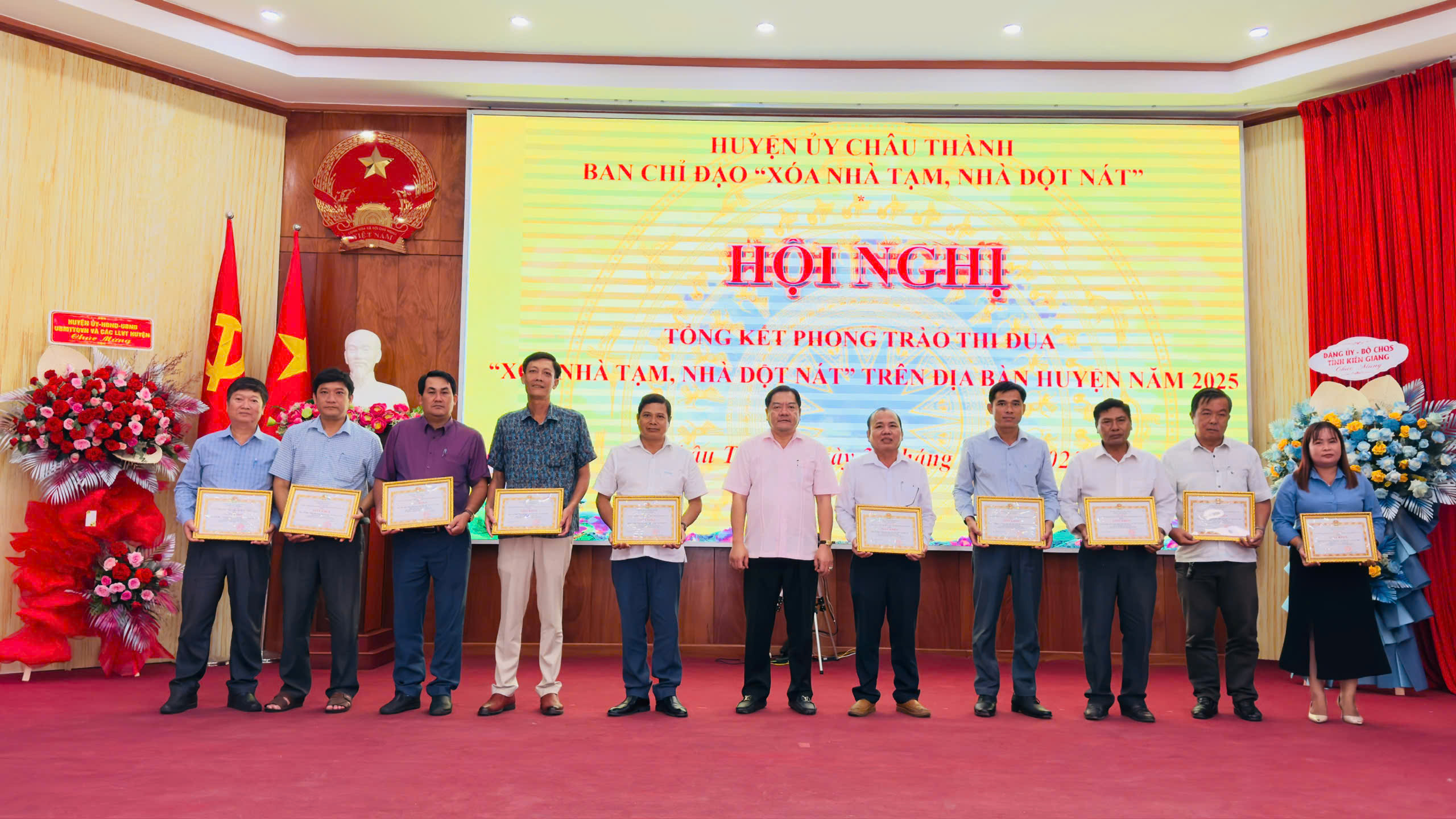 Dịp này, UBND huyện Châu Thành đã trao tặng giấy khen cho 10 tập thể và 15 cá nhân có thành tích xuất sắc trong phong trao thi đua chuyên đề “Xóa nhà tạm, nhà dột nát” huyện Châu Thành năm 2025.
