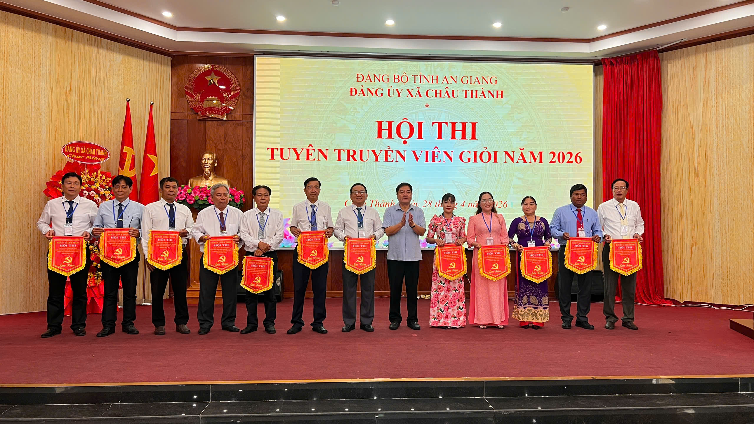 Sáng ngày 28/4/2026, Ban Thường vụ Đảng ủy xã tổ chức Hội thi Tuyên truyền viên giỏi năm 2026, Tuyên truyền Nghị quyết Đại hội XIV của Đảng và Nghị quyết Đại hội Đảng bộ các cấp nhiệm kỳ 2025 – 2030. Tham dự Hội thi có đồng chí Phan Thị Cẩm My - Trưởng Phòng Lý luận Chính trị, lịch sử Đảng, Ban Tuyên giáo và Dân vận Tỉnh ủy An Giang; đồng chí Lâm Minh Công - Bí thư Đảng ủy xã Châu Thành;đồng chí Trương Quốc Bảo - Phó Bí thư Thường trực Đảng ủy, Chủ tịch HĐND xã, Trưởng Ban Tổ chức Hội thi; đồng chí Nguyễn Văn Hiền - Phó Bí thư, Chủ tịch UBND xã; các đồng chí trong Ban Thường vụ Đảng ủy, Ban chấp hành Đảng bộ xã; các đồng chí trong Ban Tổ chức, Ban Giám khảo và 35 thí sinh đến từ các chi, đảng bộ trực thuộc.
