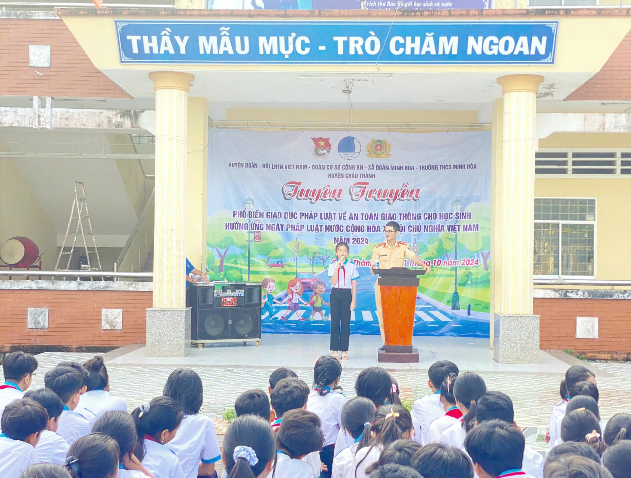 Tại buổi tuyên truyền, phổ biến những quy định về Luật giao thông đường bộ, đường thủy; các em học sinh được giao lưu, trả lời các câu hỏi về những tình huống giao thông thường gặp, khi các em tham gia lưu thông trên đường.